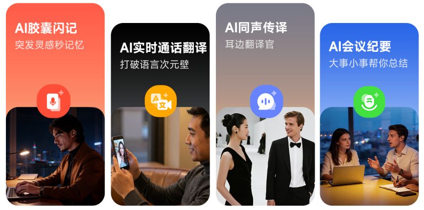 AI多模态交互:支持同声传译、会议转写、智能聊天,覆盖跨语言沟通与办公记录场景;